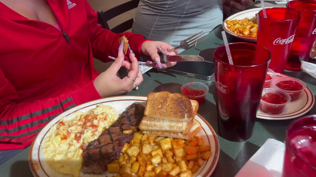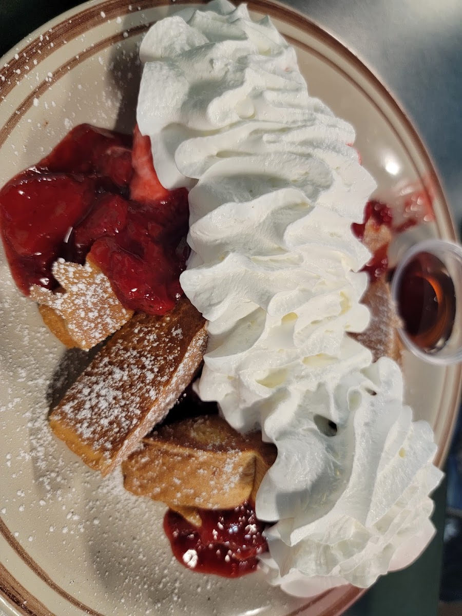 I highly recommend the California crepe or chicken fried steak, both were delicious. Their coffee and water was delicious as well. You get plenty of food for your money. Clean restroom, tables, floors and seats. Our waitress and staff were very friendly and made sure we had everything we needed. I highly recommend stopping by for some of their delicious food.
